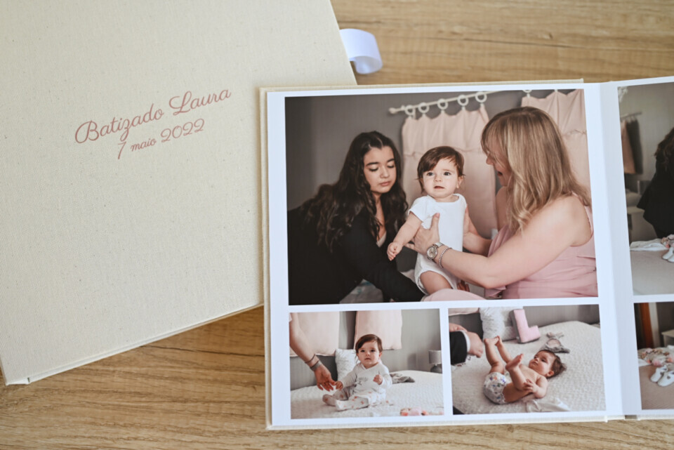 – Álbum quadrado tamanho 25×25 com 26 páginas: 150€